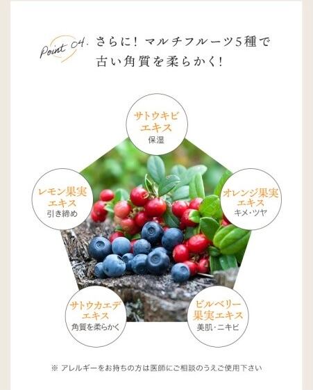 ② 古い角質を柔らかくして除去する効果の美容成分マルチフルーツ配合で、より輝きのあるツヤ肌へ✨